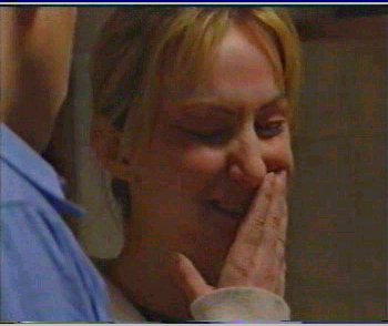 Maggie about to cry, when talking to PJ about Robbie's death PJ hugging Maggie, as she starts to cry